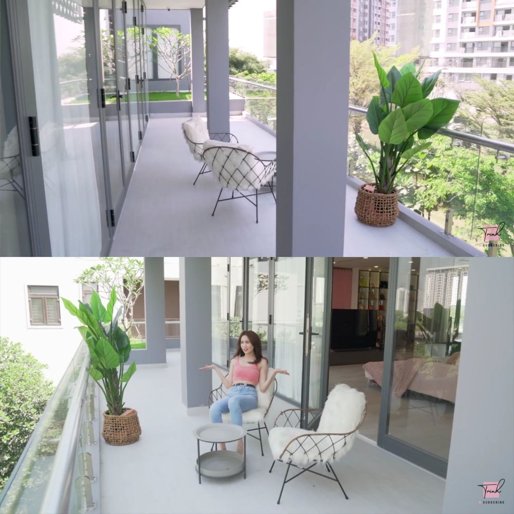 Nơi cũng rất được yêu thích của Ngọc Trinh là ban công trong phòng của cô, người đẹp thường hay dùng nơi này để ngồi xử lí công việc hay thư giãn.