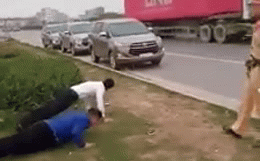 Và mới đây, người ta đã chứng kiến một hình ảnh khá thú vị được ghi lại trên đoạn đường gần khu công nghiệp Vân Trung (Việt Yên, Bắc Giang). Các đồng chí CSGT đã quyết định phạt các tài xế ô tô, cũng như người đi xe máy không đeo khẩu trang bằng cách yêu cầu họ phải chống đẩy giữa đường.