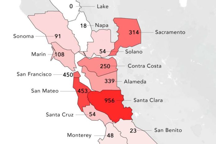 Vào hôm thứ 5, quận Santa Clara có thêm 63 bệnh nhân virus corona. Đến chiều ngày 2 tháng 4, quận có 9.218 người được xét nghiệm, và 1.019 trường hợp được xác nhận dương tính và còn 174 xét nghiệm chưa có kết quả.