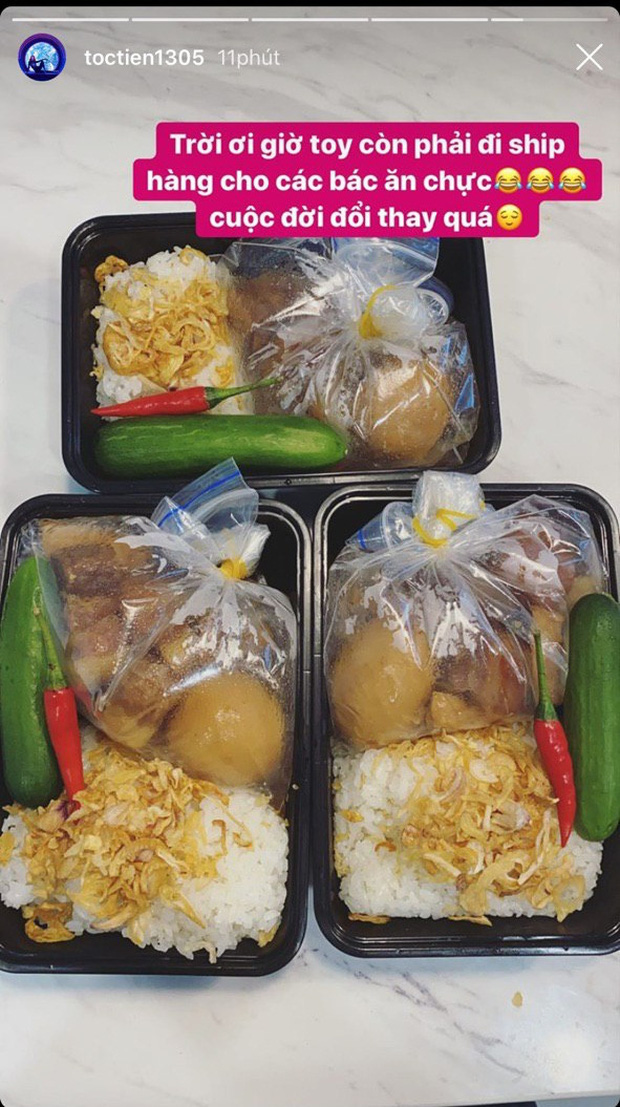 Cập nhật hoạt động mới nhất của vợ chồng Tóc Tiên – Hoàng Touliver trên mạng xã hội, dân tình thích thú cho rằng cô nên đổi nghề trong mùa dịch để kiếm thêm thu nhập. Nếu như các nghệ sĩ khác liên tục rao bán bánh, nước cam… thì Tóc Tiên có thể lựa chọn mặt hàng xôi thịt kho. Trước đó, không ít lần cô cập nhật thành quả vào bếp của mình trên trang cá nhân khiến dân mạng ngưỡng mộ.