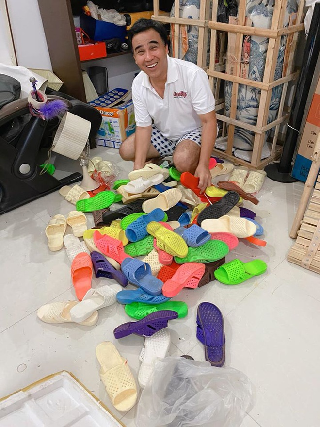 Quyền Linh với bộ sưu tập dép tổ ong đủ màu.