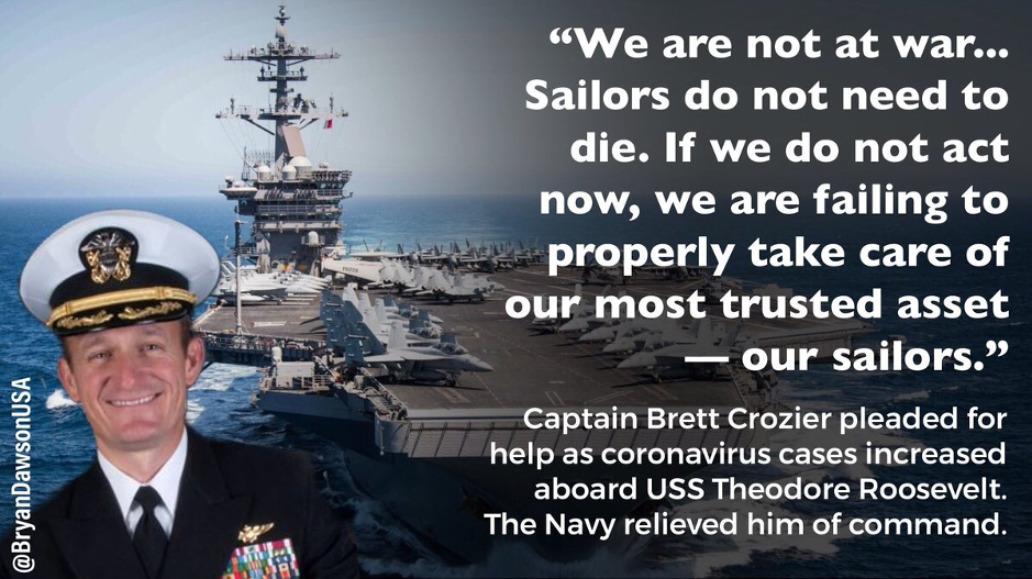 Theo VOA, tổng thống Trump nói thế sau hơn 1 tháng khi hàng không mẫu hạm rời Việt Nam, hàng trăm thuỷ thủ trong số hơn 5 ngàn sỹ quan và thủy thủ trên đó bị nhiễm Covid-19 và đã có 1 thủy thủ bị tử vong. Tổng thống cho rằng việc hàng không mẫu hạm dừng ở Việt Nam không phải là một ý tưởng hay, và bộ Hải quân Hoa Kỳ sẽ có quyết định cuối cùng về hạm trưởng Crozier.