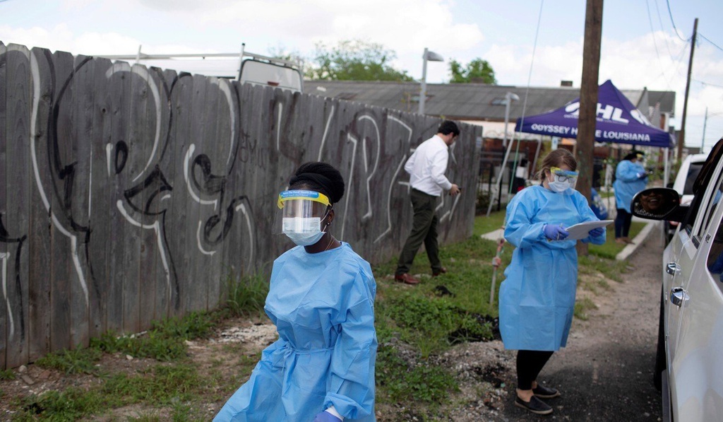 Các nhân viên y tế tại khu xét nghiệm Odyssey House, tiểu bang Louisiana. Ảnh: Reuters.
