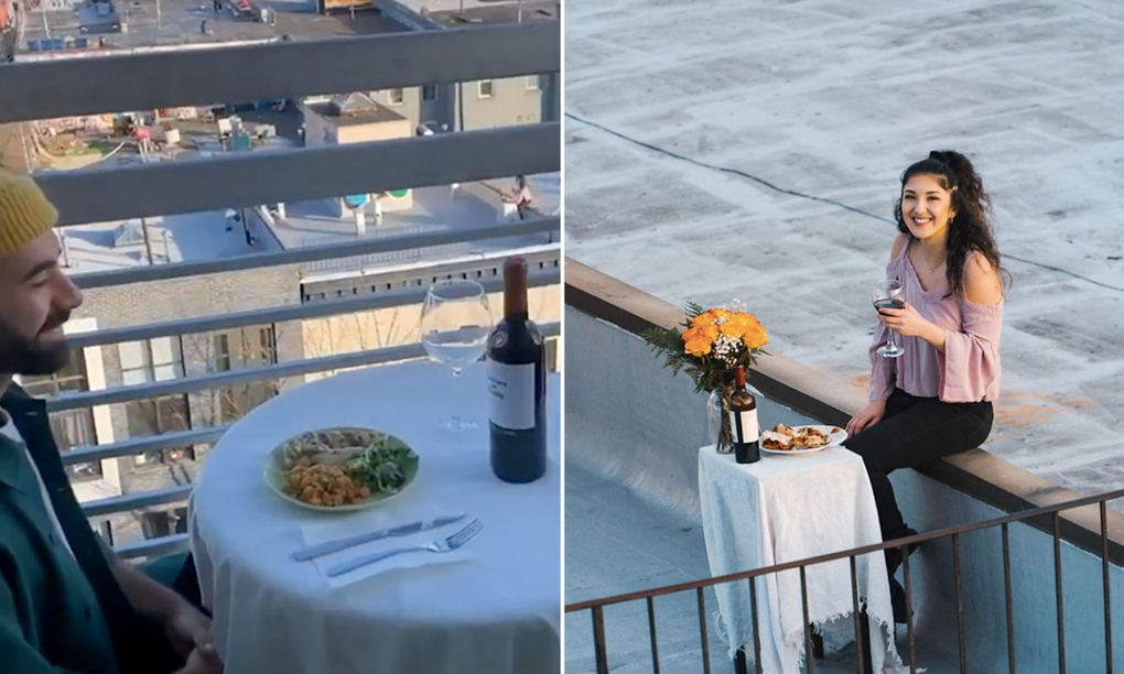 Buổi hẹn hò của Mike trên ban công và Tori trên sân thượng trong mùa cách ly. Họ vẫn có thể nhìn thấy nhau từ khoảng cách này. Ảnh: Boredpanda.