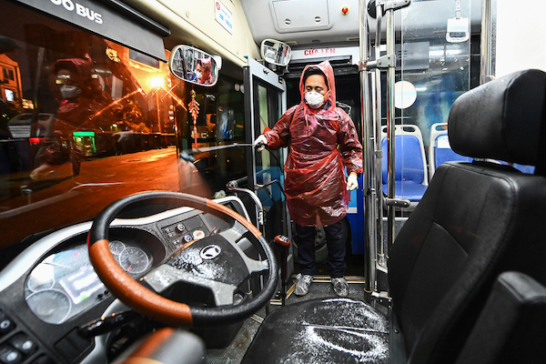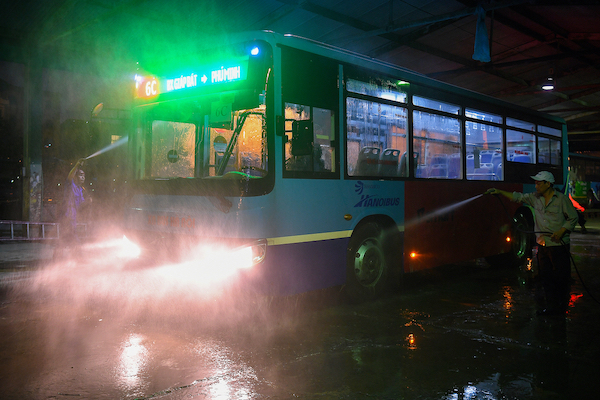 Tất cả xe buýt sau khi kết thúc hành trình mỗi ngày đều được xịt rửa, lau cồn ở vị trí nhiều người tiếp xúc và bơm dầu trước khi vào bãi đỗ.