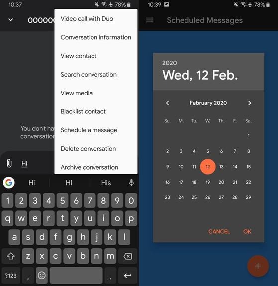 Lên lịch gửi tin nhắn trên ứng dụng Pulse SMS. Ảnh: MINH HOÀNG