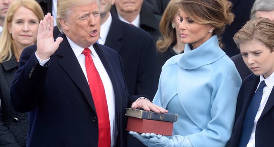 Tân TT Trump nhắc lại theo lời của chánh án John Roberts chủ sự nghi lễ tuyên thệ : “Tôi, Donald Trump, trịnh trọng tuyên thệ rằng tôi sẽ đảm đương vị trí tổng thống Mỹ một cách trung thành, và sẽ làm hết khả năng để giữ gìn, duy trì và bảo vệ hiến pháp Mỹ. Chúa giúp đỡ tôi”.