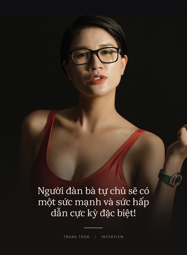 Sức mạnh của tôi là sức mạnh rất đặc biệt. Đó là sức mạnh tự chủ. Người đàn bà tự chủ sẽ có một sức mạnh và sức hấp dẫn cực kỳ đặc biệt, người đàn ông sẽ không cảm thấy bị gánh nặng bởi người đàn bà đó, và họ cảm thấy rất an tâm với người song hành cùng mình trong cuộc đời. Nếu như mai này họ có ngã xuống thì người đàn bà kia vẫn chăm lo tốt đẹp cho các con", Trang Trần khẳng định.