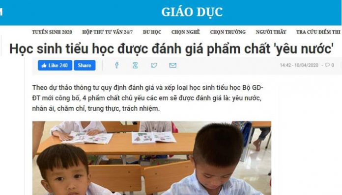 Được biết hiện nay Bộ Gáo Dục và Đào Tạo đang cho lấy ý kiến góp ý cho dự thảo Thông tư quy định đánh giá và xếp loại học sinh tiểu học. Dự thảo này được xây dựng trong bối cảnh từ năm học 2020 – 2021, Việt Nam sẽ triển khai chương trình giáo dục phổ thông mới, bắt đầu từ lớp 1 cấp tiểu học. Theo đó, học sinh sẽ được đánh giá sự hình thành và phát triển phẩm chất, năng lực theo thứ tự ưu tiên là: yêu nước, nhân ái, chăm chỉ, trung thực, trách nhiệm.