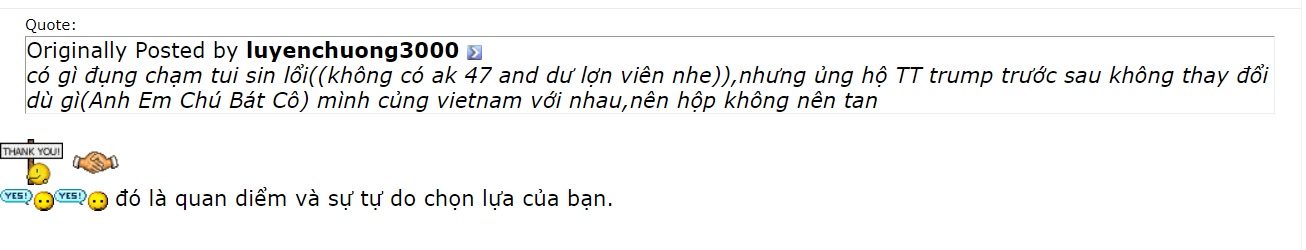 Trước khi Admin trả lởi , tôi hỏi Mod @hoanglan22 là tôi cò để nghị bác delete tất cả bài post và hình cũ cắt ghép rồi gán cho biểu tình của nick luyenchuong3000 không?