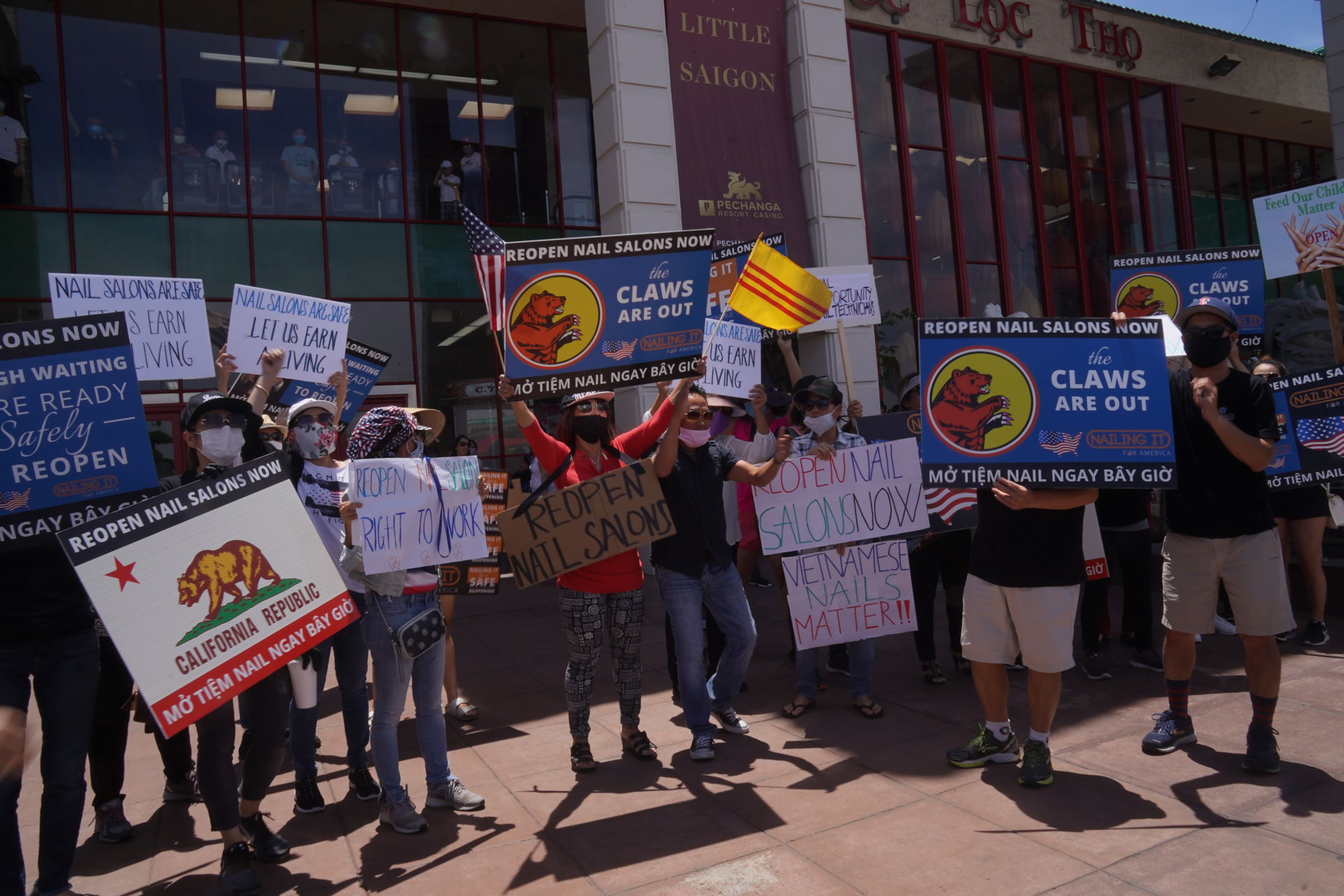 WESTMINSTER, California (NV) – Một cuộc biểu tình ôn hòa, do nhóm Nailing it For America tổ chức, diễn ra lúc 1 giờ chiều hôm Thứ Hai, 8 Tháng Sáu, tại thương xá Phước Lộc Thọ, với mục đích loan báo việc khởi kiện thống đốc California, ông Gavin Newsom, vì câu nói của ông “gây thiệt hại cho ngành nail.”