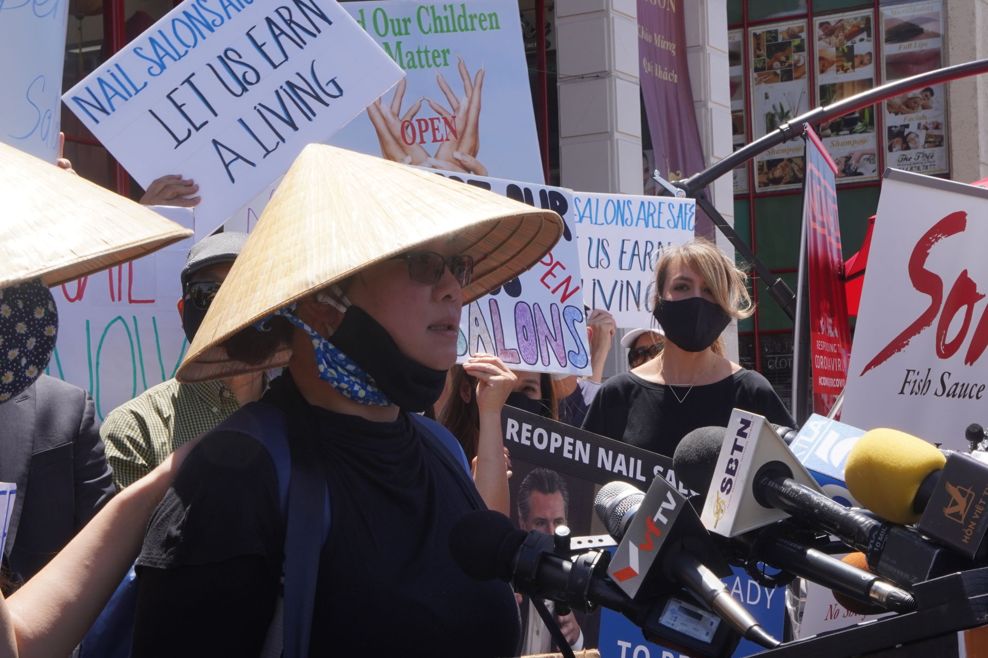 “Chúng tôi làm nail mấy chục năm nay và chúng tôi đóng thuế đàng hoàng. Từ khi nghỉ vì đại dịch, chúng tôi chấp hành đúng lệnh của chính phủ là đóng cửa và chờ. Nhưng cho đến bây giờ khi tất cả những business khác đã được mở cửa trở lại, riêng tiệm nail thì không. Chúng tôi không có tiền trả tiền thuê tiệm, không có tiền trả tiền bill, chúng tôi không có tiền PPP, chúng tôi rất căm phẫn, chúng tôi phải đứng lên.”