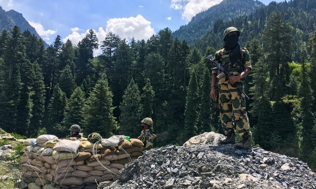Lực lượng biên phòng Ấn Độ canh gác trên tuyến đường cao tốc tại Gagangir dẫn tới biên giới với Trung Quốc hôm 17/6. Ảnh: AFP.