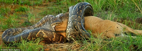 Tại Khu bảo tồn động vật hoang dã ở Nam Phi, một con trăn đã bị bắt gặp đang thưởng thức bữa ăn của mình là một con linh dương đầu bò. Con trăn này dài tới 5m và có kích thước rất to lớn so với đồng loại của mình.
