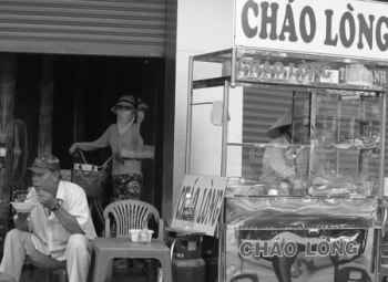 Ông già Tàu tính kỹ, kích thước tô cháo nhỏ xíu, cháo múc chỉ tới nửa tô. Phải ăn tới năm tô mới tạm đủ… Hôm nào hẻo, kêu một tô, cho ớt thiệt cay, uống nhiều trà đá, cũng đỡ vã.