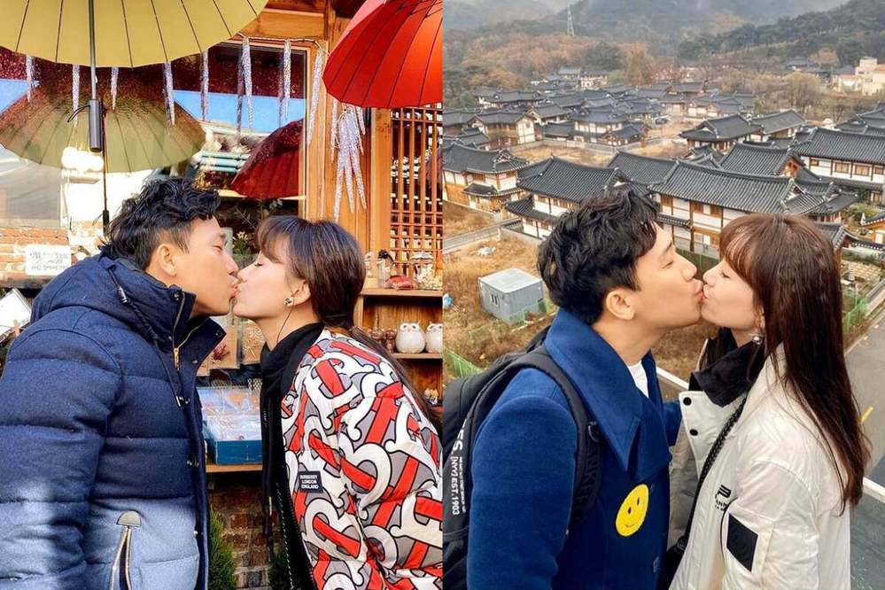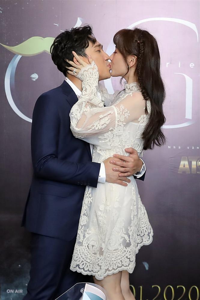 Dù ở đâu cả Hari Won và ông xã của mình cũng sẽ không ngần ngại hôn nhau. (Ảnh: FBNV)