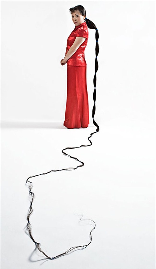Cô Xie Qiuping tới từ Quảng Tây, Trung Quốc được Guinness công nhận là người có mái tóc dài và mượt nhất với chiều dài 5m63.