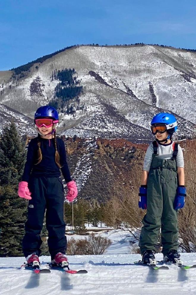 Các bé được mẹ cho đi trượt tuyết. Hồng Nhung luôn khuyến khích các con sống gần gũi với thiên nhiên. Cô cũng đảm bảo cho các tiếp thu kiến thức bằng cách học online.