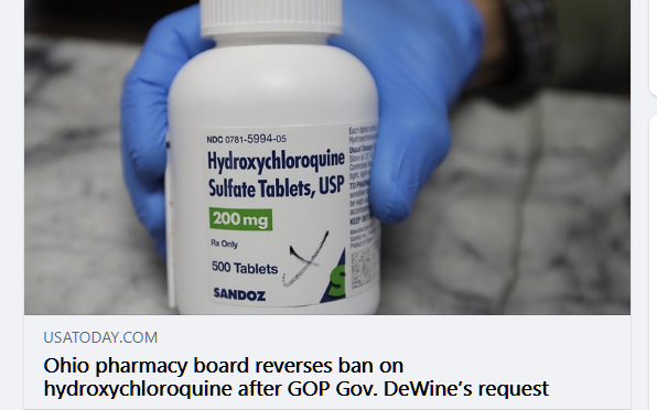 Thống Đốc OHIO cấm bán và dủng hydroxychloroquine để chửa trị COVID-19
