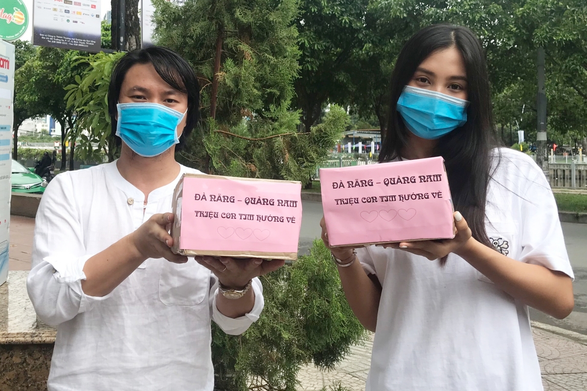 Hoa hậu Tiểu Vy cũng có mặt hỗ trợ đạo diễn Hoàng Nhật Nam (trái) khi anh khởi xướng Đà Nẵng, Quảng Nam - Triệu trái tim hướng về. Trước đó, Tiểu Vy ủng hộ trực tiếp 100 triệu đồng đến người dân Đà Nẵng, đồng thời gửi thêm 10 triệu đồng vào quỹ chương tŕnh của đạo diễn Hoàng Nhật Nam.