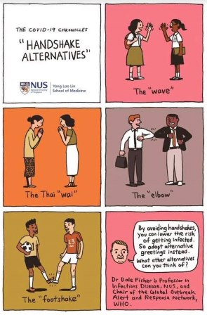 Nó là những biểu hiện nhận ra nhau, tình thân, quy định quan hệ xã hội của chúng ta có từ hằng ngàn năm qua. Nay, bỗng chốc nó bị ngăn cấm luu hành vì phòng ngừa lây bệnh nên khó tránh trở thành một mất mát lớn. Nhiều người tìm thay thế. Mỗi người một sáng kiến. Hơn là để mất luôn.