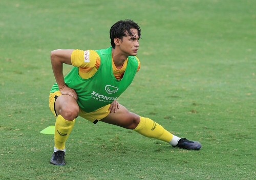 Tiêu Exal tập luyện trong màu áo U22 Việt Nam. Ảnh: Trí Công