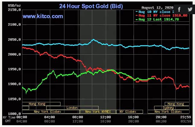 Số liệu kinh tế ảm đạm và đồng đôla yếu là những yếu tố được cho là kéo giá vàng tăng 4 USD phiên hôm qua (12/8), lên 1.914 USD một ounce.