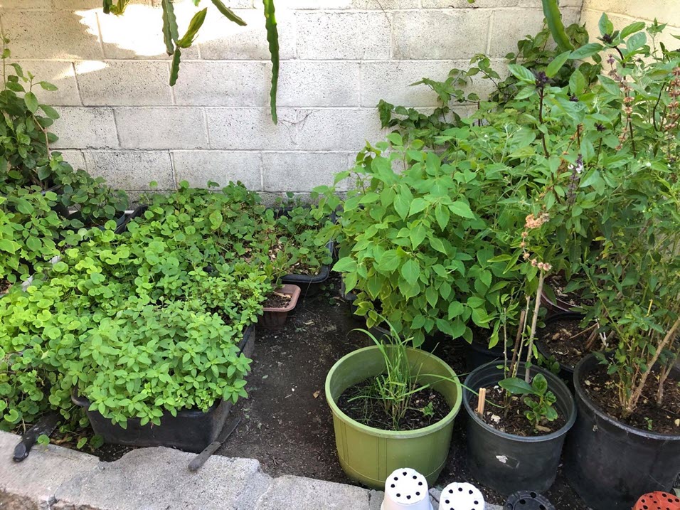 Chỉ một góc nhỏ trong vườn gần lối ra vào, chị Tuyến nói: “Đó là góc rau xanh của chị Cúc, chị gái tôi. Chị ấy trồng các loại rau thơm, xả, ớt,…Vườn nhà mình vì thế khá đa dạng.”