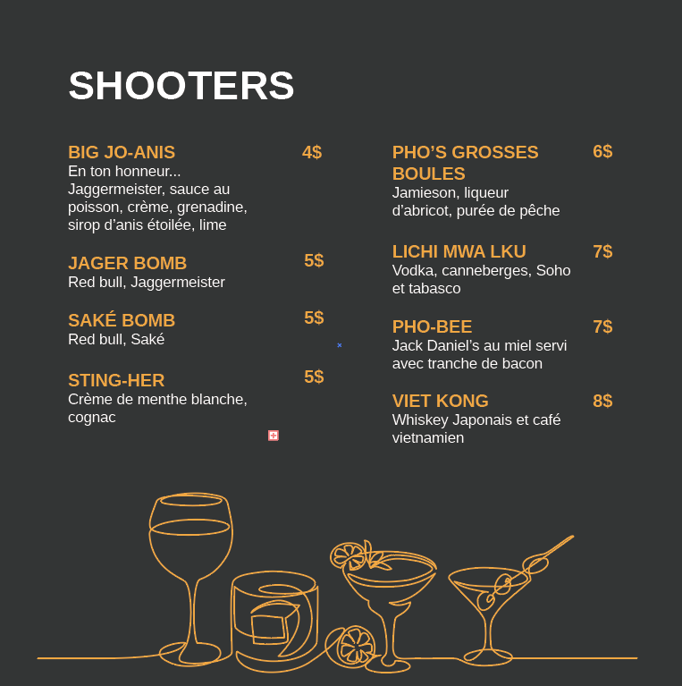 Thực đơn nhà hàng Phở King Bôn tại Rosemère có một món thức uống mang tên “Viet Kong”, đồng thời nhà hàng này cũng có một món ăn có tên dễ bị đọc nhầm sang một từ lóng có ý nghĩa thô tục trong tiếng Pháp. Do đó, những người Việt tại Quebec đã bày tỏ sự phẫn nộ trước menu có phần thô tục và xúc phạm nền văn hóa Việt.
