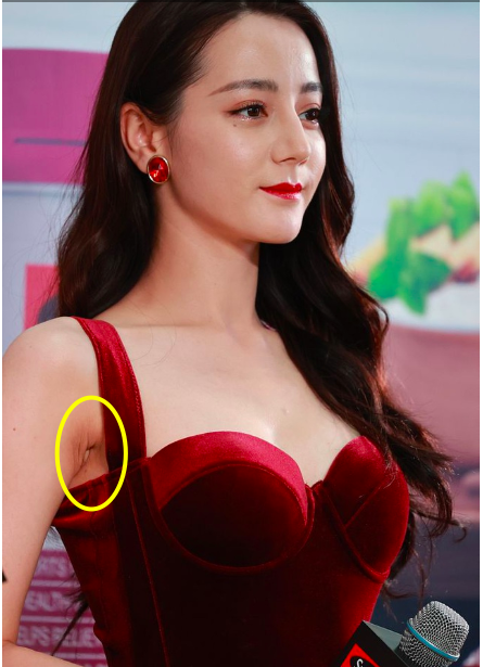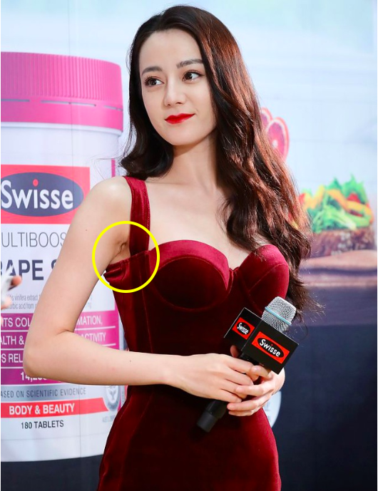 Sở hữu sắc vóc đẹp tựa nữ thần nhưng Địch Lệ Nhiệt Ba vẫn không giấu được làn da vùng nách xỉn màu, nhăn nheo.