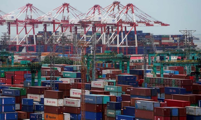 Các container hàng hóa tại một cảng ở Thượng Hải, Trung Quốc, hồi tháng 7/2018. Ảnh: Reuters.
