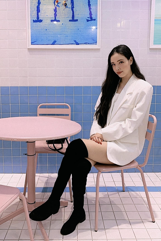 Làn da trắng mịn cùng vóc dáng quyến rũ khiến cô càng thêm thu hút.