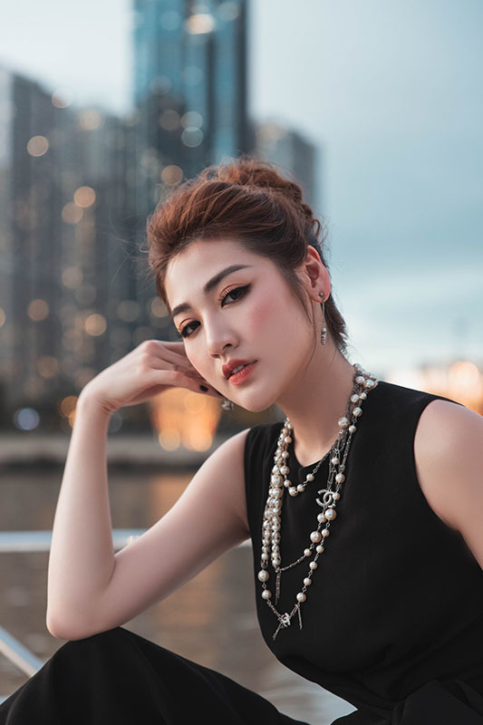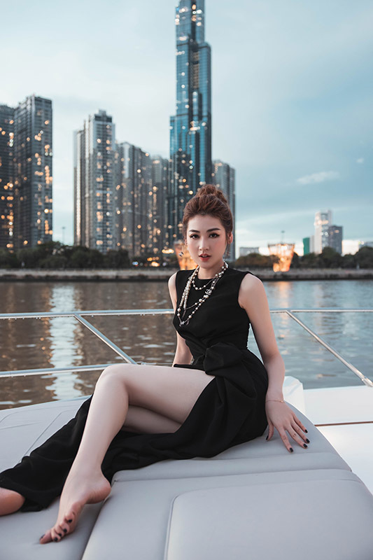 Trong bộ ảnh mới nhất, á hậu Dương Tú Anh tham dự sự kiện một trên du thuyền tại sông Sài Gòn. Người đẹp đảm nhận vai trò MC vì được tin tưởng lối ăn nói lưu loát và duyên dáng. Dương Tú Anh diện đầm xẻ cao khoe đôi chân dài miên man cùng tràng cổ, hoa tai Chanel. Người đẹp sinh năm 1993 vẫn trung thành với cách trang điểm tự nhiên phong cách Hàn Quốc và tóc được bới cao. Á hậu nhận được nhiều lời khen ngợi về nhan sắc ngày một rực rỡ và mặn mà hơn trước.