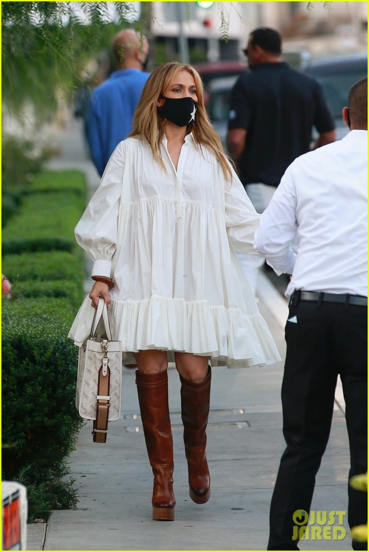 Vào dịp cuối tần, Jennifer Lopez gây chú ý khi diện đầm dáng rộng phối cùng boots trẻ trung đi ăn trưa cùng bạn trai kém 6 tuổi ở West Hollywood, California.
