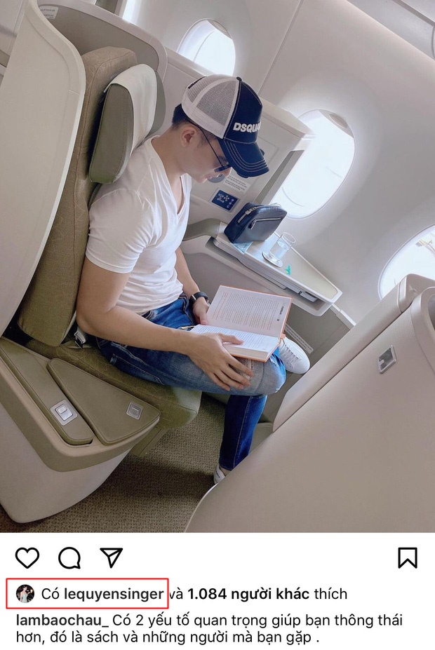 Sau khoảng thời gian úp mở, mới đây, Lệ Quyên và Lâm Bảo Châu đồng loạt có động thái gây chú ý trên trang Instagram cá nhân. Cụ thể, ngay khi giọng ca “Sầu tím thiệp hồng” vừa tung ảnh ngồi khoang hạng sang của máy bay thì ít phút sau, người tình tin đồn cũng đăng tải khoảnh khắc với bối cảnh hoàn toàn trùng khớp.