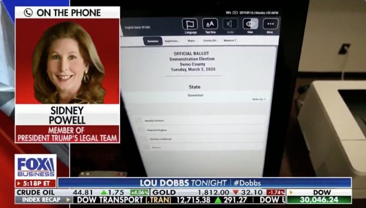 Fox News Business host Lou Dobbs interviewed prominent attorney and former federal prosecutor Sidney Powell on his show tonight. Powell hasn’t been interviewed since the Trump campaign announced that Powell is working independently from Trump campaign lawyers’ team, headed up by Rudy Giuliani.