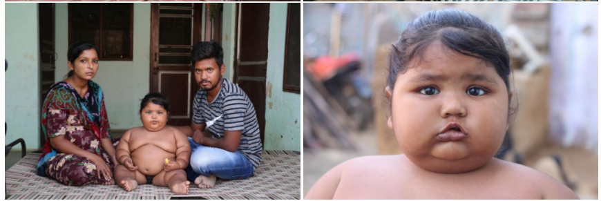 Năm 2017, cô bé Chahat Kumar (Punjab, Ấn Độ) khiến truyền thông thế giới chú ý khi có vóc dáng mũm mĩm quá khổ. Khi đó chỉ mới 8 tháng tuổi, Chahat đã nặng 17 kg - tương đương đứa trẻ 4-5 tuổi.