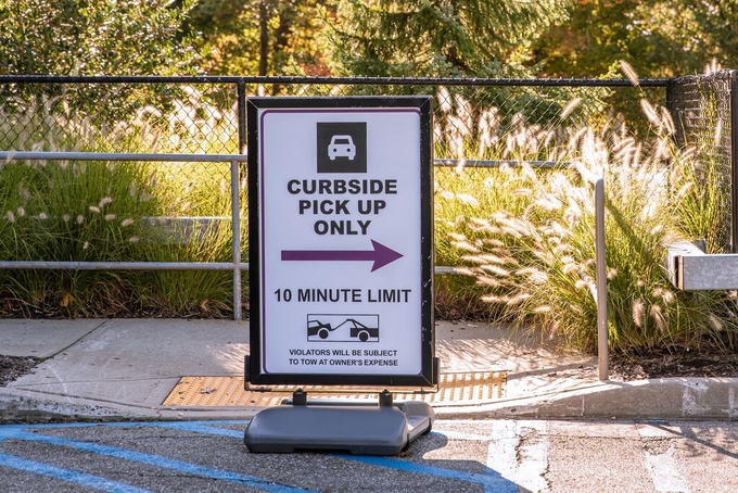 Thông báo lấy hàng theo kiểu curbside pickup của một hãng bán lẻ. Ảnh: NYT