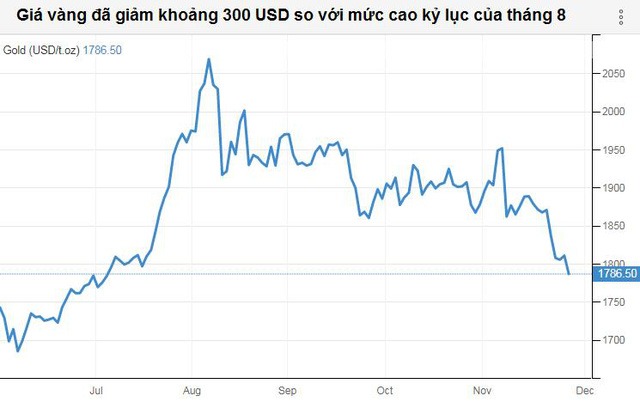 Giá vàng kỳ hạn tháng 12/202 cũng giảm 1,3% trong phiên cuối tuần, xuống 1.781,9 USD/ounce.