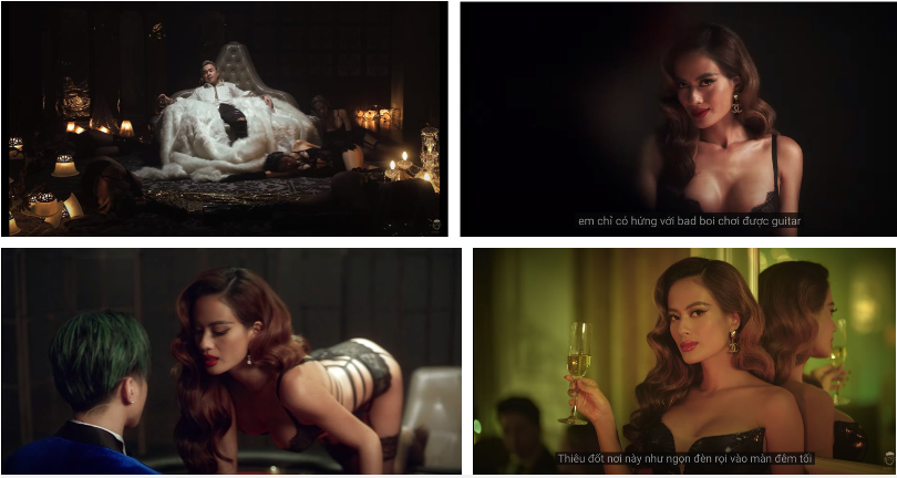 Người mẫu Như Vân quyến rũ Soobin Hoàng Sơn, lả lơi bên Binz trong MV "Black Jack".