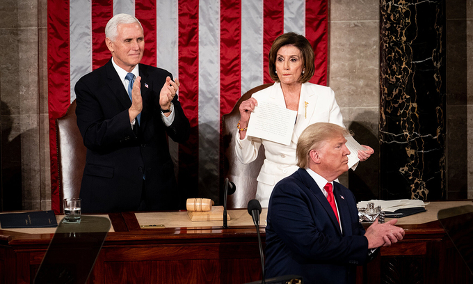 Được Thượng viện Mỹ do phe Cộng hòa kiểm soát đảm bảo tha bổng, Tổng thống Trump dùng chính Thông điệp Liên bang để tuyên bố về nhiệm kỳ hai. Khoảnh khắc đáng nhớ nhất tối 4/2 là khi Chủ tịch Hạ viện Nancy Pelosi xé bản sao Thông điệp Liên bang ngay sau bài phát biểu của Trump. Trong khi đó, những lời cổ vũ "bốn năm nữa" dành cho Trump của các nhà lập pháp Cộng hòa càng cho thấy rõ cảnh tượng chia rẽ rõ rệt giữa hai đảng.