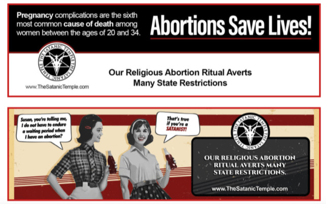 Abortion rights activists known as The Satanic Temple (TST) announced Wednesday they have posted billboards in Texas and Florida to promote what they call their “religious abortion ritual.”