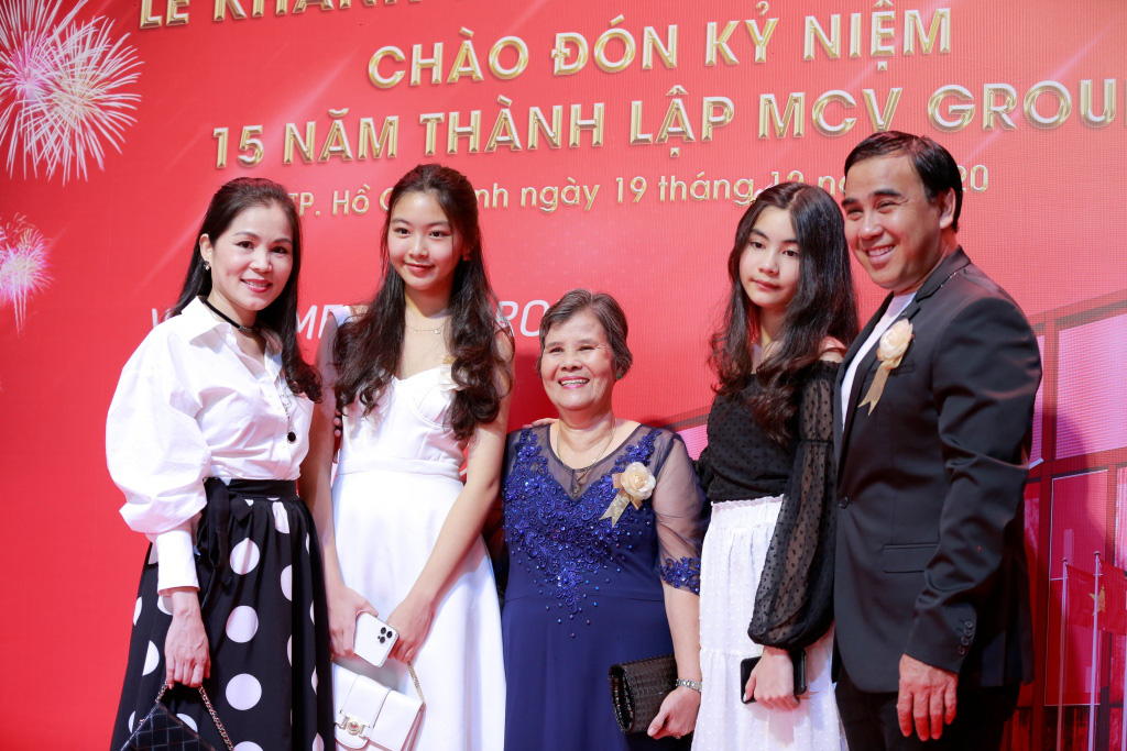 Có mặt tại sự kiện khánh thành tổ hợp phim trường MCV Complex mới đây, gia đình nghệ sĩ Quyền Linh đặc biệt gây chú ý. Trong khi nam nghệ sĩ bảnh bao với trang phục vest đơn giản thì vợ anh là Dạ Thảo cùng 2 con gái Thảo Linh (Lọ Lem) – Thảo Ngọc (Hạt Dẻ) mặc váy tông trắng – đen đồng điệu. Mẹ của nghệ sĩ Quyền Linh cũng có mặt và vui vẻ cùng các con tham dự sự kiện.