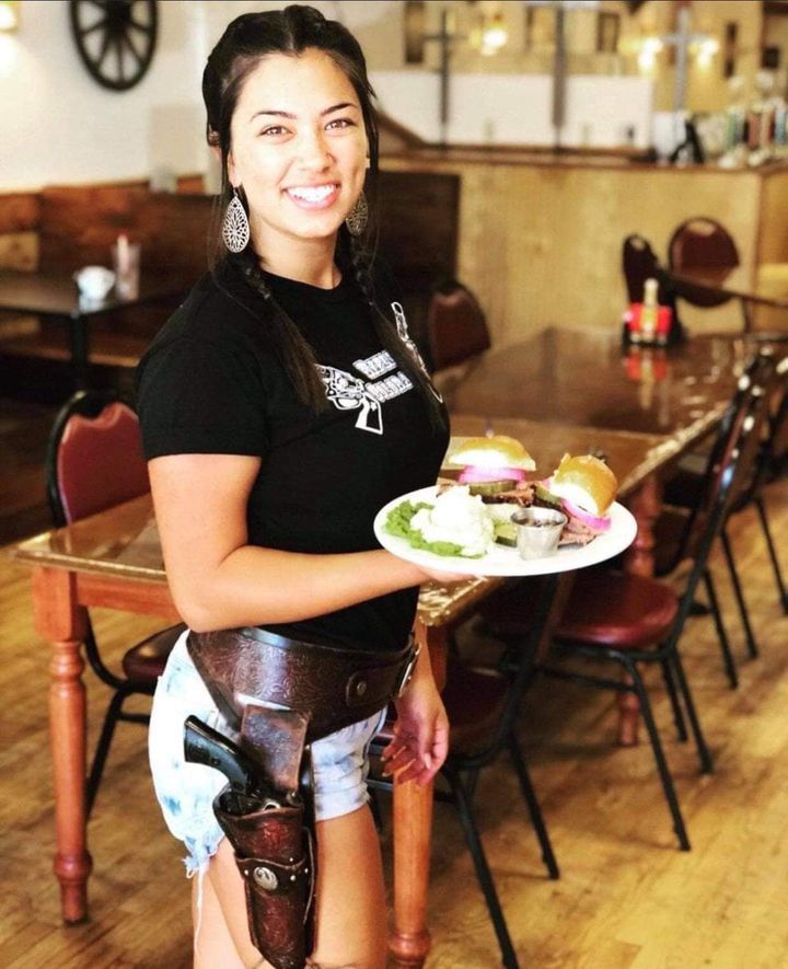Lauren Boebert có một sự sáng tạo đến độ thách thức. Các nhân viên hầu bàn trong quán đều mang lủng lẳng chó lửa bên hông. Ngay cả anh đầu bếp nấu phía sau cũng đeo đồ chơi rất ngầu. Súng ngắn bên hông ở đây như là một trang phục, một biểu tượng tự do kiểu Mỹ, một thách đố nơi đây hổng bao giờ sẽ là Âu Châu XHCN và chính quyền là ông bà cố nội. Như bà Chủ Tịch Hạ Viện Nancy Pelosi đã từng ngược ngạo “Chúng tôi cho dân ăn” – We feed them. Đúng ra dân còng lưng ra đóng thuế để nuôi bà.