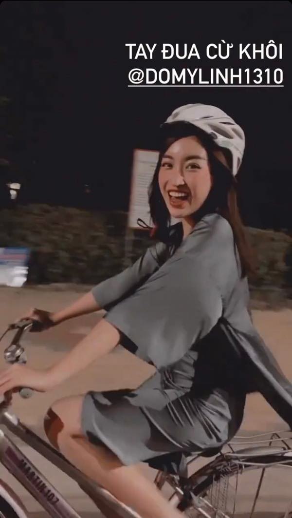 Đỗ Mỹ Linh khiến giả giật mình khi mặc váy ngủ mỏng đạp xe trên đôi guốc cao 5 phân.