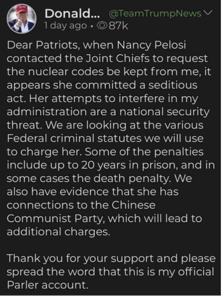 Pelosi có thể ở tù lên đến 20 năm hoặc hơn hoặc sẽ bị tử hình