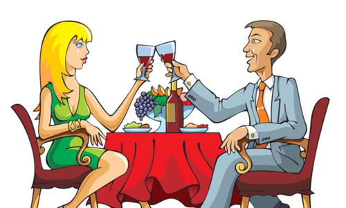 Giữa bữa ăn, đột nhiên cô vợ nhận ra một gương mặt quen thuộc bèn huých tay chồng, chỉ ra phía đó.