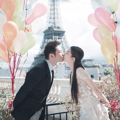 Vợ chồng Angelababy và Huỳnh Hiểu Minh chụp ảnh kỷ niệm khi nữ diễn viên mang thai con trai đầu lòng.