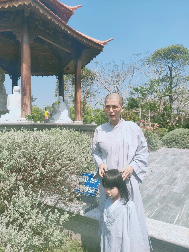 Nhiều người đồn đoán rằng người đẹp này đã quy y cửa Phật nên mới quyết định cạo trọc đầu và mặc áo lam.