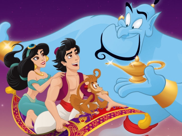 Alađanh sau khi lấy được công chúa trong đêm tân hôn vớ vẩn thế nào lại sờ phải cái đèn thần, lập tức thần đèn hiện lên khoanh tay nhìn hai vợ chồng. Công chúa ngượng lắm nói: